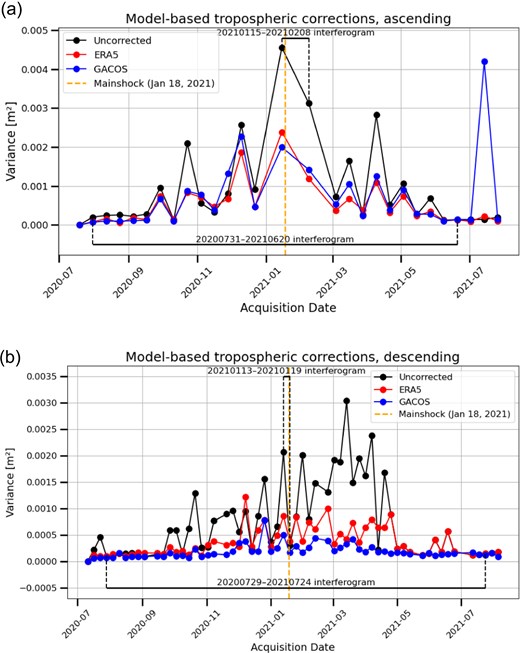 Comparison of methods to correct atmospheric phase delays in Sentinel-1 displacements reconstructed from InSAR time series in the Andean fold and thrust belt in Argentina (Leon-Ibañez and Delgado, 2025).